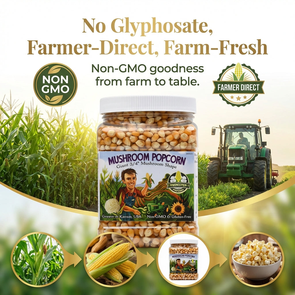 Como agricultor de primera generación, el granjero Bob ha cultivado palomitas de maíz de alta calidad en nuestra granja en Kansas. Nuestros granos de palomitas de maíz con hongos se cultivan de manera responsable con el máximo cuidado utilizando semillas sin OGM. La filosofía de la marca es la de etiquetas limpias; Sin gluten, pocos conservantes y sin jarabe de maíz con alto contenido de fructosa. Se prueban o inspeccionan hasta 15 veces durante todo el proceso de crecimiento y cultivo para mantener un sabor y una capacidad de explosión óptimos. Es por eso que puede realizar pedidos con nosotros con confianza. Estamos orgullosos de nuestros granos de palomitas de maíz y de ayudar a las personas a vivir una vida sana y feliz.