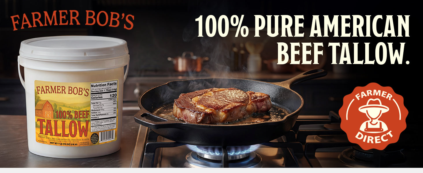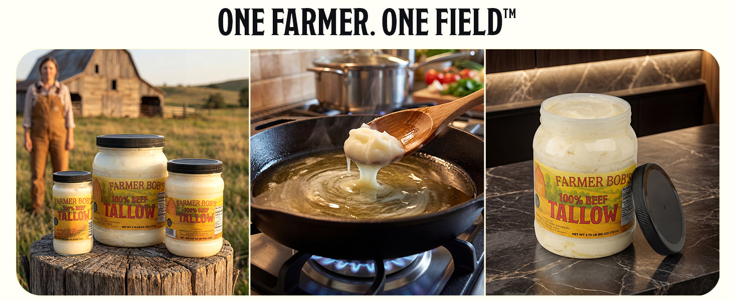 Farmer Bob's Beef Tallow for Cooking - Ideal for Deep Frying & Soap Making - Grass Fed - Bulk Cooking & Baking - Natural, Versatile Culinary Fat - Perfect for Kitchens & Home Chefs