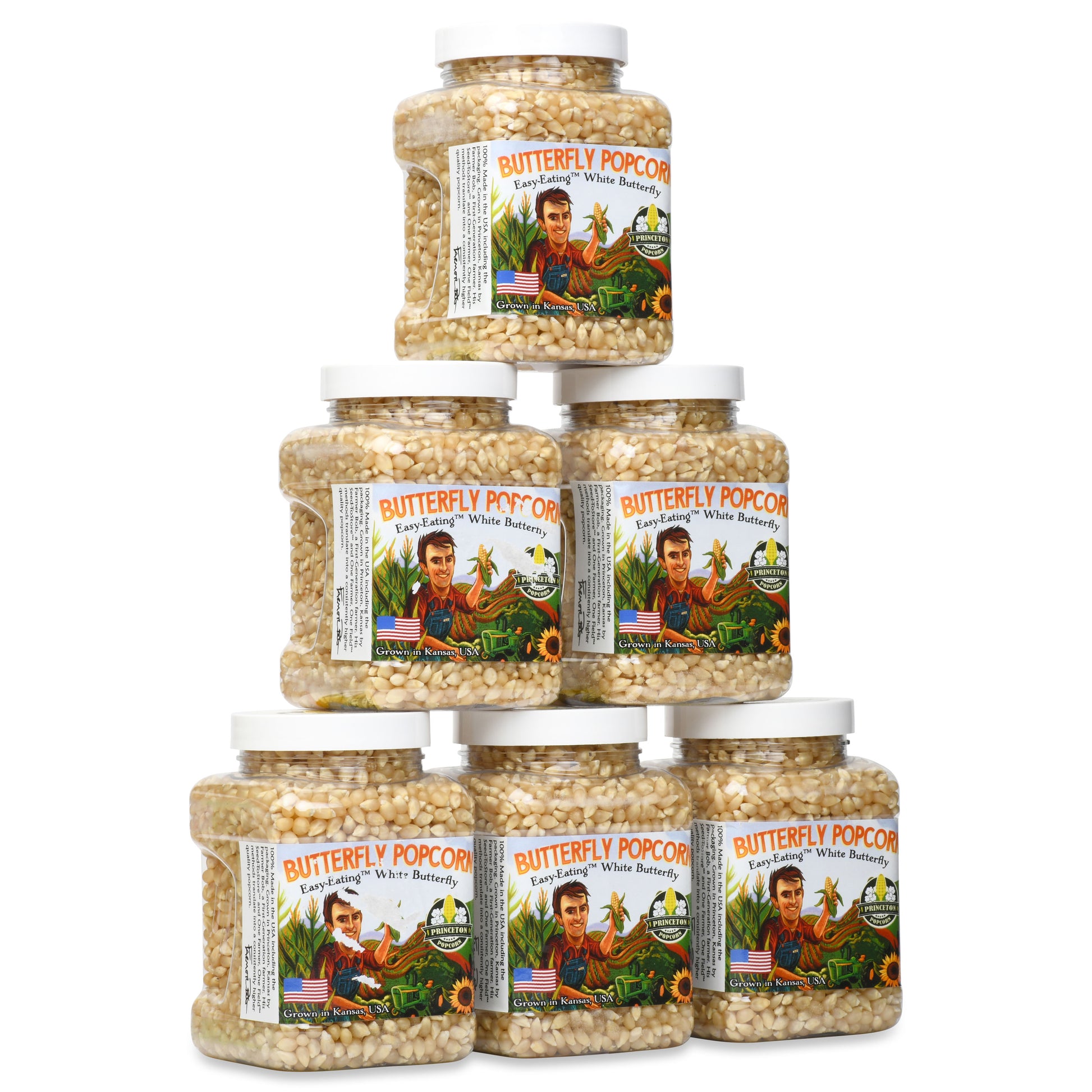 Six Pack of 1lb Tubs White Butterfly Popcorn Kernels by Princeton Popcorn Farm Grown Non-GMO Gluten Free UnPopped Butterfly Shaped Old Fashion Popcorn hulless Popping Corn for Microwave Air Popper & Stovetop 96 oz