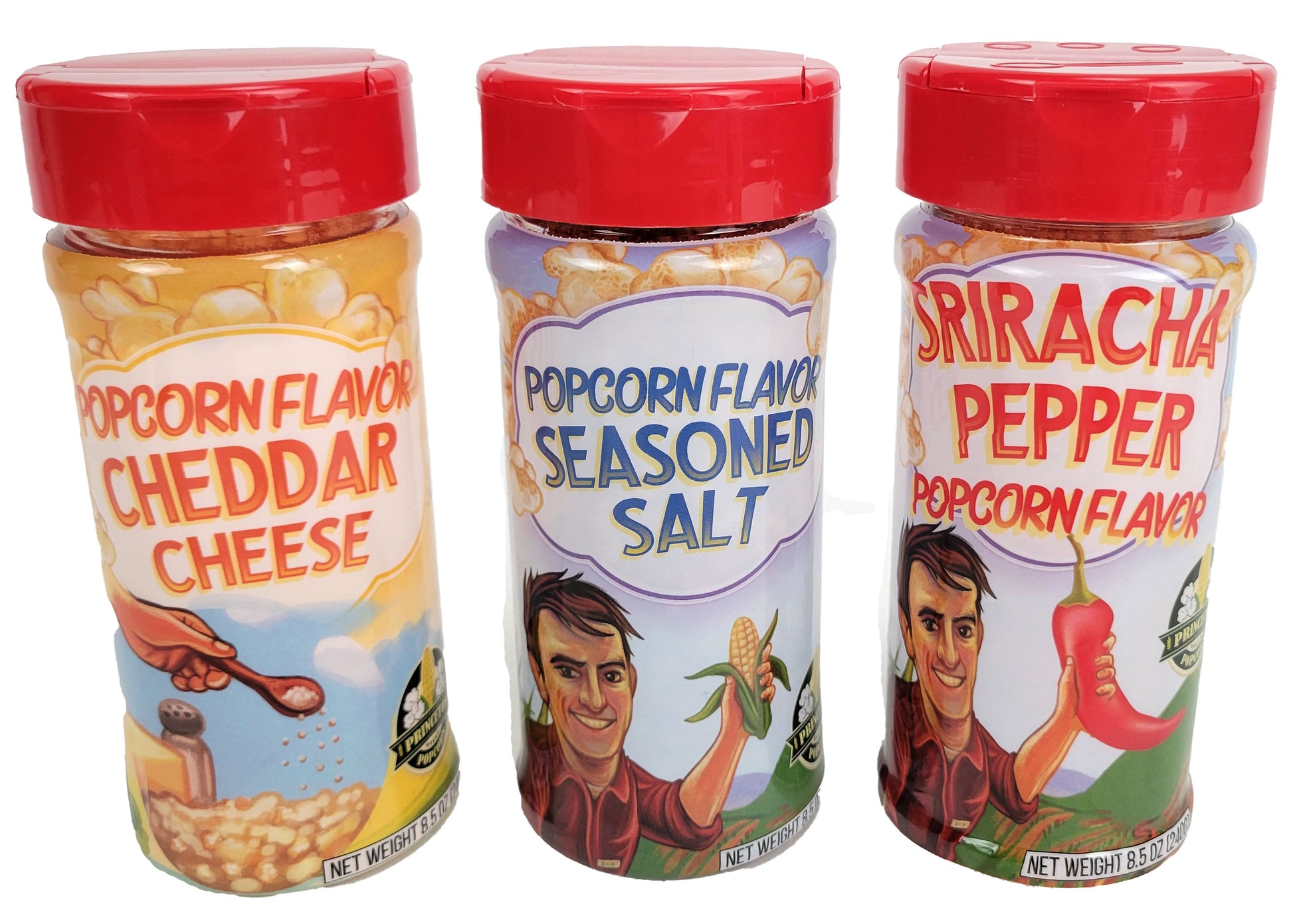Popcorn Flavor Trio 3.5 oz - 3 Pack Farmhouse Salt, Cheddar Cheese & Sriracha